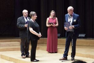 I want to inform you , yesterday we had a very nice and important ceremony for the Club. The Henryk Wieniawski Musical Society (a 19th century violin virtuoso born in Lublin – please google „Obertas” for example to associate if anyone is not familiar with this figure) celebrated its 125th anniversary. On this occasion, a festive symphonic concert was held in the beautiful hall of the Lublin Philharmonic. The hall of several hundred people was full. The Music Society is a strategic partner of our Rotary Club. Together we have been running the Paul Harris School of Music for Disabled Youth (psychotherapy with music) for a quarter of a century. Together we organize the National Competition for Young Violinists (an investment in young talent). Yesterday’s concert was also the inauguration of the XII Competition. Together We are also organizing the International Competition of Young Violinists (triennial). The next edition will be next year. Yesterday’s concert was an opportunity to strongly present Rotary in the local and wider community( graphic symbols, , speeches, Rotary awards I presented). The hall of several hundred people was full. A few photos are attached.