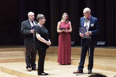 Jako Klub jesteśmy związani z TM ścisłą współpracą niemal od początku naszej działalności. Chciałoby się znowu powie-dzieć „ niech żałują ci, którzy nie byli obecni”, bo koncert ten to była kolejna egzemplifikacja naszej wymiernej rotariańskiej działalności i naszej obecności z życiu publicznym Lublina . Było uroczyście, miło, prawdziwie koncertowo. Sala Filharmonii Lubelskiej była pełna. Było wiele osób ze wszystkich trzech lubelskich klubów Rotary. To miło, że tak licznie przyjęli nasze zaproszenie na ten koncert. Było też wielu kolegów, którzy byli kiedyś z nami i odeszli z różnych przyczyn. Byli obecni nasi członkowie honorowi. Był obecny świeżo przybyły z Tajwanu nasz student z programu wymiany młodzieżowej Rotary Youth Exchange: Jupes Chien Wei Yuan. Dopisali melomani, którzy są stałymi bywalcami na koncertach Filharmonii Lubelskiej. Rotary było bardzo widoczne na tej uroczystości; zarówno pod względem oprawy plastycznej (eleganckiej) jak i w części oficjalnej, w której po wy-stąpieniu Prezydenta RC Lublin-Centrum, Zarząd Towarzystwa Muzycznego i indywidualnie jego dyrektor Ryszard Heliasz, oraz prof. Danuta Warząchowska (prowadząca Szkołę dla Dzieci i Młodzieży Niepełnosprawnej im. Paula Harrisa) zostali wyróżnieni naszymi rotariańskimi „Diploma of Recognition”. W przerwie, w kuluarach było wiele emocjonalnych, umówionych i tych niespodziewanych spotkań i rozmów.