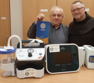 Hospicjum zakupiło nowoczesne przenośne koncentratory tlenu, elektroniczny aparat do stymulacji procesów kaszlu u małych leżących pacjentów oraz automatyczne odsysacze. Urządzenia zostały oznaczone naklejkami z nazwą Waszego Klubu „Rotary Club Oostende ter Streep-Belgium”. Aparaty zostały przekazane wspólnie z moim klubowym kolegą Jackiem Woźniakiem, który jest również członkiem Rady Nadzorczej w tym Hospicjum.