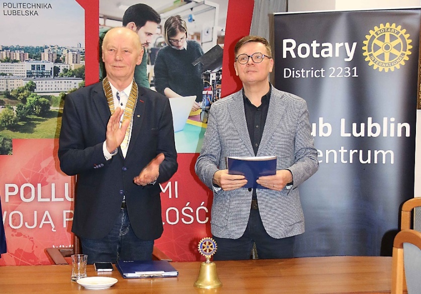 Na zakończenie spotkania przekazaliśmy na ręce prof. Patera nasze rotariańskie uhonorowanie dla Politechniki Lubelskiej „Diploma of Recognition” w którym napisaliśmy: