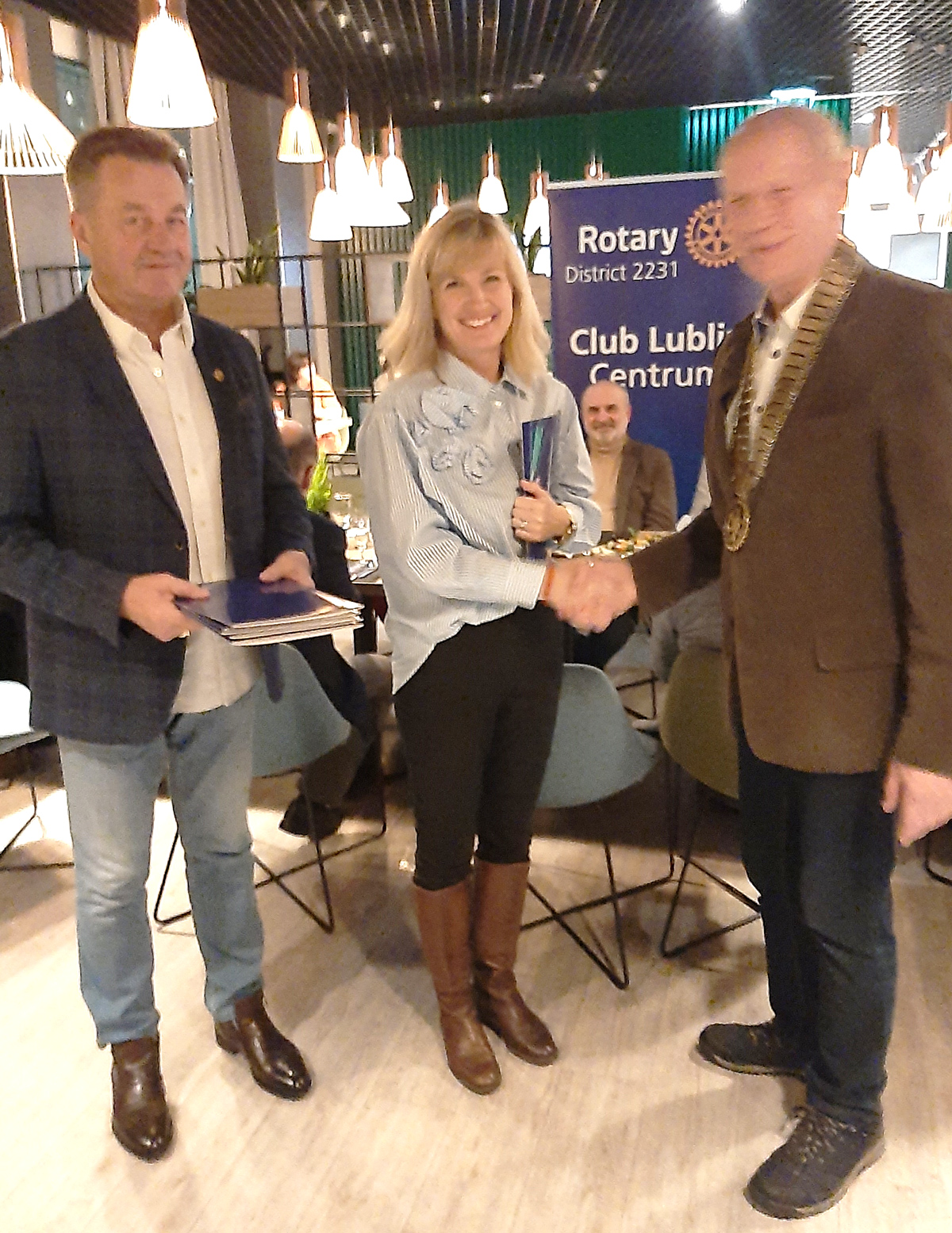 Gospodarzem dzisiejszego zebrania RC Lublin-Centrum była grupa solenizantów imieninowych: Patrycja Wieczorek, Andrzej Banaszkiewicz, Albert Czajka, Andrzej Łoś i Mateo Karczmarczuk, którzy zaprosili Klub na swoje święto. To utarty już zwyczaj w naszej społeczności rotariańskiej. Było niezwykle miło, pogodnie i prawdziwie przyjacielsko, bo spotkanie przedłużyło się do późnych godzin wieczornych. Solenizanci otrzymali pamiątkowe adresy okolicznościowe „The Best Wishes and Thanks” życzeniami. Spotkania takie są niezwykle motywujące do bycia razem i dają dodatkową siłę w wypełnianiu naszej szlachetnej misji czynienia dobra.