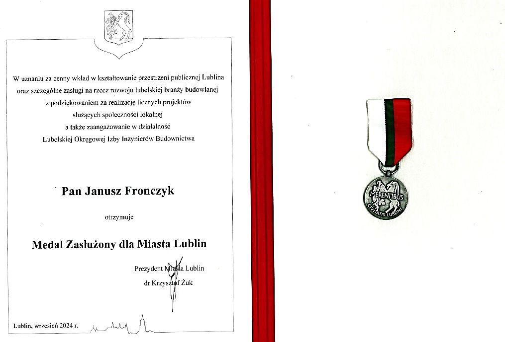 Podczas Gali wręczono odznaczenia państwowe. Medale 100-lecia Odzyskanej Niepodległości, wręczono również odznaki resortowe „Za Zasługi dla Budownictwa”, Złote Odznaki Honorowe Polskiej Izby Inżynierów Budownictwa.  Medalem „Zasłużony dla Miasta Lublin” uhonorowano m.in. naszego klubowego Kolegę Janusza Fronczka.