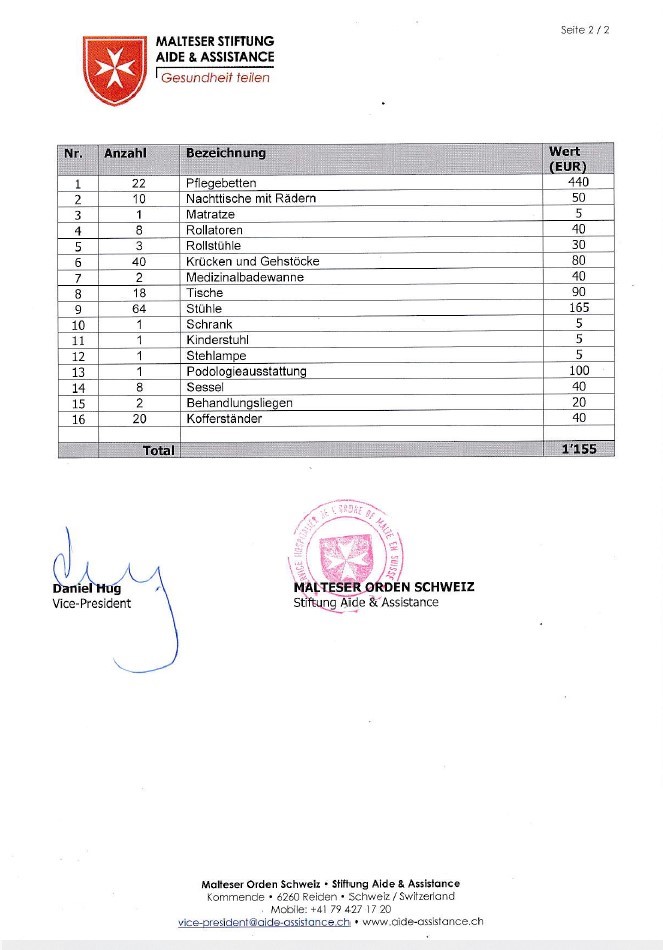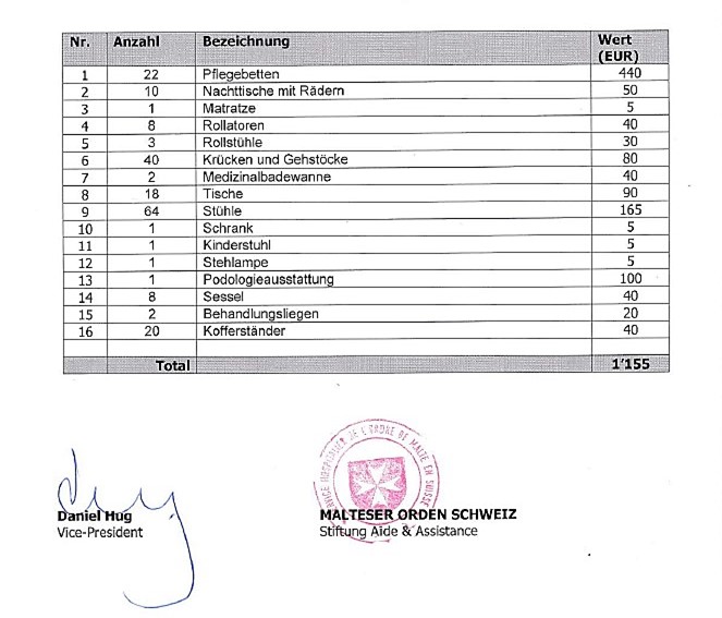 Staraniem Zbyszka Czmudy otrzymaliśmy właśnie ze Szwajcarii kolejny transport wyposażenia sal szpitalnych z przeznaczeniem dla Ukrainy (wykaz sprzętu w załączeniu).