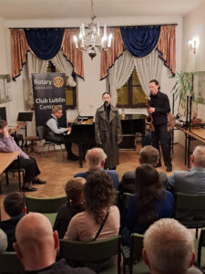 W dniu 26 lutego 2024 zebranie naszego Rotary Clubu Lublin Centrum odbyło się w siedzibie założonego 125 lat temu Towarzystwa Muzycznego im. Henryka Wieniawskiego w Lublinie. To naturalne. Współpracujemy bowiem z tym Towarzystwem od początku istnienia naszego Klubu; a od 22 lat z powodzeniem prowadzimy razem program terapii zajęciowej muzyką dla dzieci i młodzieży niepełnosprawnej znany powszechnie pod nazwą Szkoła Muzyczna im. Paula Harrisa. Jest to jedyna tego typu inicjatywa w całym globalnym świecie rotariańskim. W spotkaniu wzięli udział dostępni tego dnia uczniowie-pacjenci szkoły, pedagodzy, akompaniatorzy i dyrekcja Towarzystwa Muzycznego. Zebranie było więc formą gospodarskiej wizyty z zamiarem zaznajomienia członków naszego Klubu z aktualną działalnością szkoły, jej sukcesami, problemami i planami na przyszłość. Uczniowie różnych grup zaawansowania dali próbki swoich umiejętności instrumentalnych i wokalnych. Przekonaliśmy się na własne oczy i uszy jak cudownie skutecznym i jednocześnie pięknym lekiem jest muzyka. Było bardzo muzycznie, artystycznie, miło.
