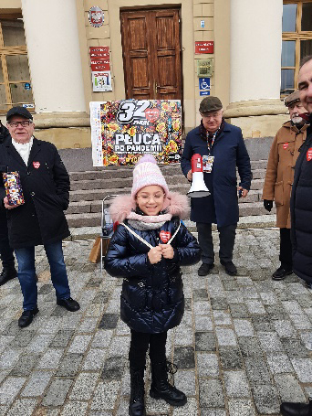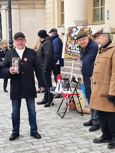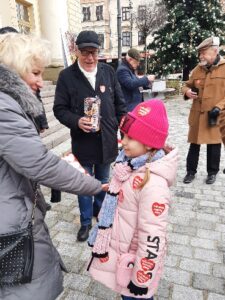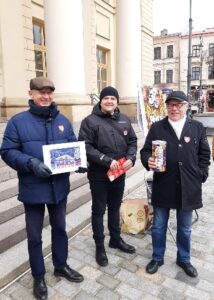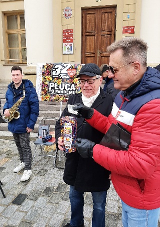 Niedziela 28 stycznia 2024 – wszyscy graliśmy w 32-giej edycji Wielkiej Orkiestry Świątecznej Pomocy. Tym razem zbieraliśmy pieniądze w trosce o nasze płuca po pandemii Covid-19. Temat jest nam tym bardziej bliski, że kierownikiem Kliniki Pulmonologii, Onkologii i Alergologii SPSK Nr 4 w Lublinie jest nasz kolega klubowy prof. dr hab. n.med. Janusz Milanowski. Nasz „pulpit” orkiestrowy został umiejscowiony tradycyjnie na Placu Łokietka przed lubelskim Ratuszem. Naszym” dyrygentem” – także tradycyjnie – był nasz klubowy kolega Zbyszek Jurkowski – Radny Rady Miasta Lublin. Zbyszek – jako zarejestrowany wolontariusz 32 WOŚP pełnił swoją misję od świtu do północy. Zawsze jest znakomicie przygotowany (plansza WOŚP, megafon, otoczenie atrakcyjnych postaci (szlachcic w kontuszu, saksofonista …), drobne upominki dla darczyńców, dużo arkuszy z serduszkami, dużo puszek z ambicją zapełnienia ich wszystkich, duża aktywność w interakcji z przechodniami).