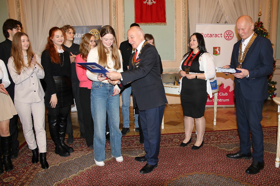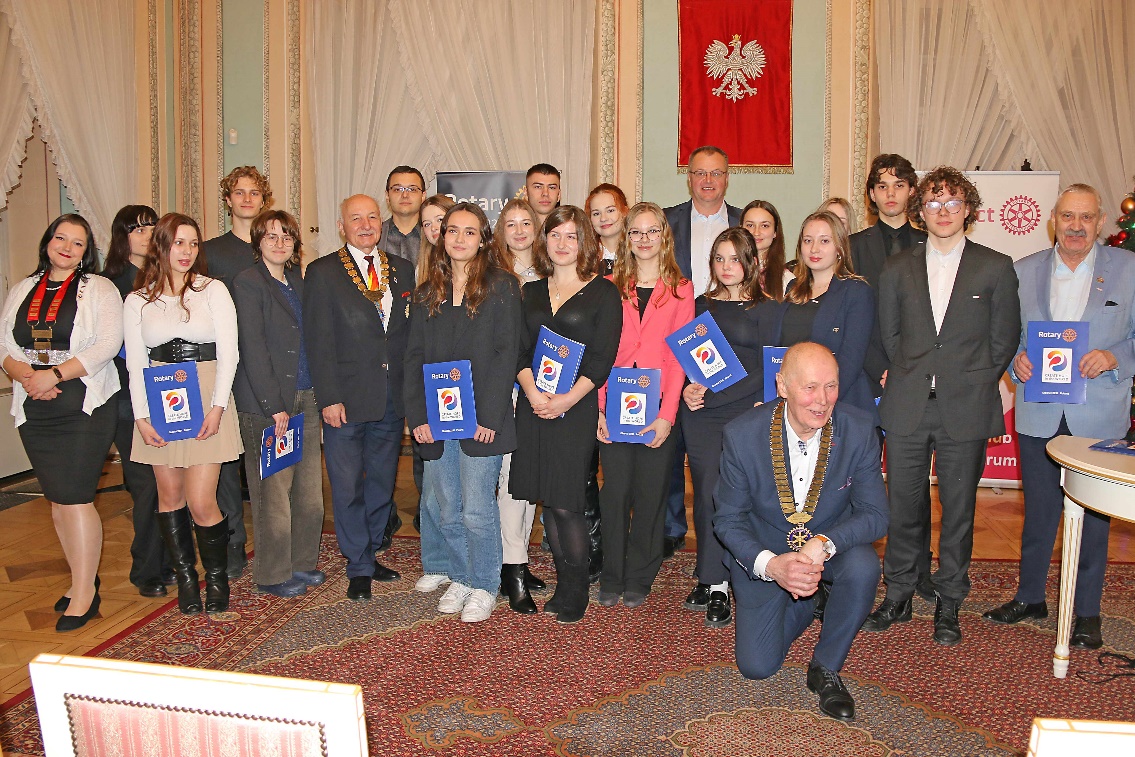 Mamy nowy młodzieżowy klub rotariański „Rotaract Club Lublin Centrum”! W dniu 22 stycznia 2024 odbyła się w zabytkowych wnętrzach Trybunału Koronnego na Starym Mieście w Lublinie uroczystość zagnieżdżenia tego Klubu (tradycyjna nomenklatura rotariańska); w międzynarodowych relacjach nazywana zwykle „Charter Day Ceremony”. Kartę czarterową (Charter Card) – oficjalny dokument potwierdzający rejestrację Klubu przez Rotary International w One Rotary Center w Evanston (USA) z podpisem Prezydenta Rotary International – Gordona R. McInally z kontrasygnatą Gubernatora Dystryktu 2232 Polska Marka Wcisło został wręczony pierwszej Prezydent Rotaract Club Lublin-Centrum – Hani Wieczorek- przez obecnych na uroczystości: Gubernatora Marka Wcisło i szefową struktur rotaractorskich w Dystrykcie 2231 – Jagodę Zmarz. Imponująca jest liczba członków założycieli (charter members) – bo 21. Wszyscy oni otrzymali specjalne „Diploma of Recognition” z poświadczeniem, że są członkami założycielami i z gratulacjami podpisane przez DG Marka Wcisło i Prezydenta klubu sponsorującego – RC Lublin Centrum – Mateo Karczmarczuka. Ponadto Mateo wręczył Prezydent Hani Wieczorek insygnia klubowe tj. dzwonek ceremonialny i takowąż „prezydencką” zawieszkę na szyję z logo RI i Rotaract. Po tym Hania rozpoczęła swoje pierwsze oficjalne zebranie używając tych insygniów i wygłosiła swój pierwszy speech.
