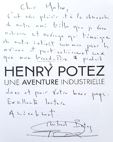 Takim przypadkiem jest francuska rodzina Potez – od pokoleń w branży przemysłu lotniczego. W okresie międzywojennym  w Lublinie był produkowany m.in. samolot cywilno-wojskowy Potez XXV. Autorem tej  niezwykle popularnej wtedy w Europie konstrukcji był przedsiębiorca Henry Potez – jeden z ojców awioniki francuskiej. Firma ELMAX naszego kolegi klubowego Jacka Woźniaka odrestaurowała zabytkowy budynek hangaru przy ul. Wrońskiej w Lublinie, w którym te maszyny były wytwarzane. Zostały także zrekonstruowane ich modele w skali 1:2. Potomkowie Henry Potez’a, którzy we Francji kontynuują swoją działalność w przemyśle lotniczym dowiedzieli się o tym od współpracujących z naszym Klubem Rotarian francuskich. Mój przyjaciel, Prezydent Rotary Club  Le Havre Ocean – Gilles Battier, który  rok temu był gościem naszego RC zawiózł nasz album „Samoloty z Lublina” do Francji i wręczył  Potezom. Ci  dumnie sfotografowali się z tą książką na ostatnim Międzynarodowym Salonie Lotniczym w Paryżu (patrz zdjęcie). W rewanżu Jacek Woźniak i ja jako Prezydent Rotary Club otrzymaliśmy francuską biografię H. Poteza z bardzo miłą dedykacją (patrz zdjęcia). Jest też plan, aby wiosną, zrobić spotkanie polsko-francuskie w Lublinie połączone z odsłonięciem tablicy pamiątkowej H. Poteza.