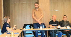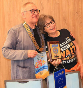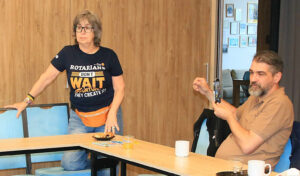 Spotkanie miało niespodziewanego gościa z USA. Odwiedziła nas Sandra z San Diego Coastal Rotary Club z Californi. Miejscowość jest położona 5 km od granicy z Meksykiem. Sandra była przejazdem, jej mama była więźniem obozów koncentracyjnych na Zamojszczyżnie, tam taż zginęli jej ojciec i dziadkowie. Teraz stara się odwiedzić miejsca tych tragicznych zdarzeń, zdobyć dokumenty na temat swoich przodków i miejsc w których stracili życie. Materiały te pragnie wykorzystać w zakładanym przez Nią w San Diego muzeum holokaustu, ponieważ praktycznie nikt z tamtejszych mieszkańców nie ma pojęcia o tych zdarzeniach z II Wojny Światowej. W ramach wizyty wymieniliśmy się proporczykami i zrobiliśmy pamiątkowe zdjęcia.