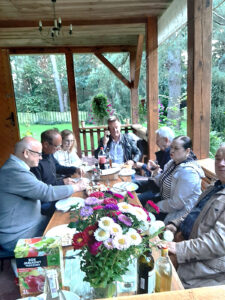 Po oficjalnych uroczystościach udaliśmy się do „chacjendy” Karczmarczuków, gdzie żona Mateo Barbara przygotowała kilka smacznych potraw i słodkości. Wspomógł ją Janusz Milanowski pokaźną porcją wędlin i Basia Orłowska swoim pysznym ciastem owocowym. Przy biesiadnym stole, a później przy ciepłym żarze płonącego ogniska było – jak przystało w gronie prawdziwych przyjaciół – miło, wesoło i do późnych godzin wieczornych. Szkoda tylko, że w spotkaniu uczestniczyło stosunkowo mało Rotarian, a warto było tam być.