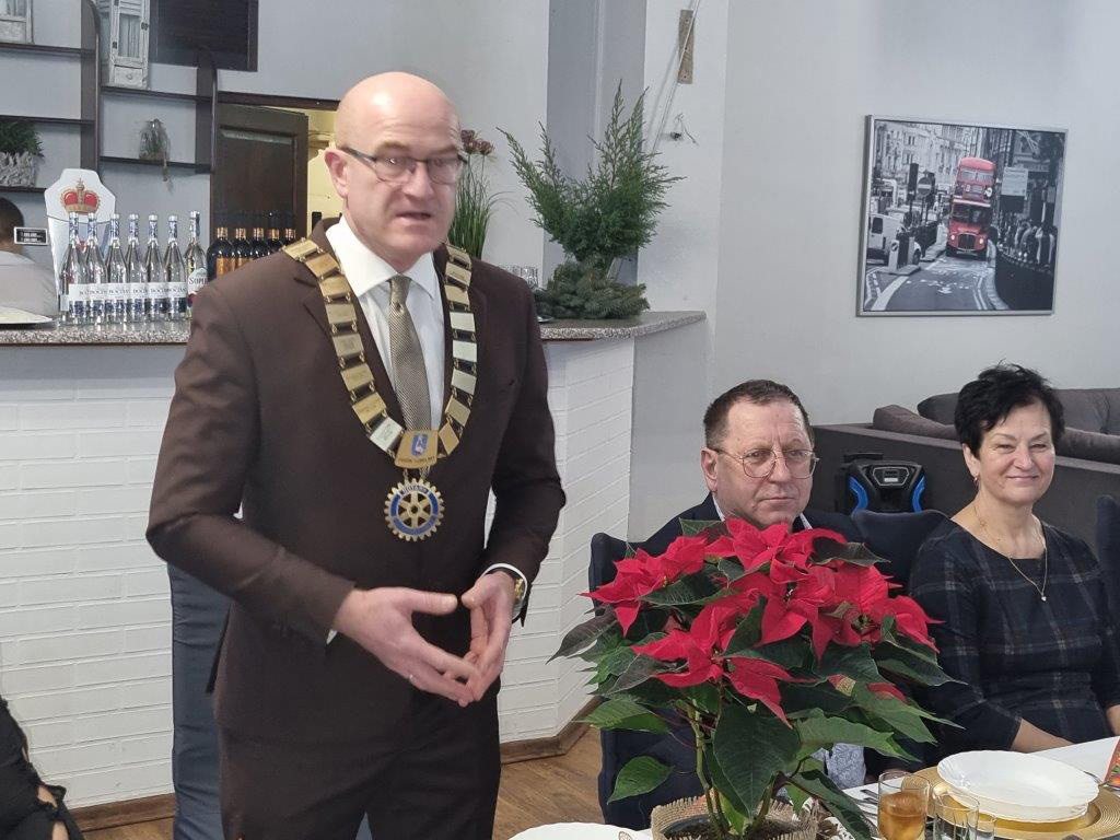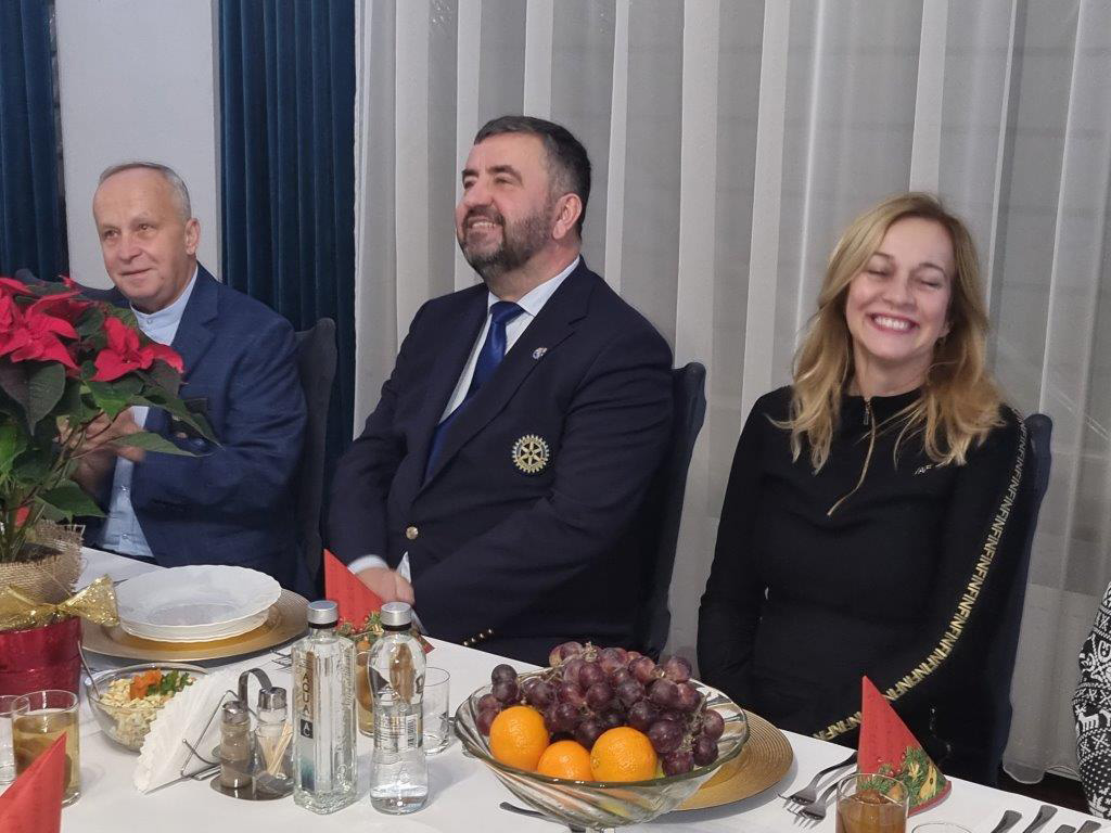 W spotkaniu wzięli również udział goście ze Słowacji, był Prezydent RC Spisska Nova Ves Błażej Pirkovsky oraz – co było dla nas sporym zaskoczeniem – District Governor 2024/2025 Josef Melecky  z małżonką Mirką, który okazał się przesympatycznym człowiekiem, z dużym zacięciem artystycznym i olbrzymią dawką pozytywnego humoru. Jego  solowa interpretacja Jożina z Bażin wywołała aplauz licznie zgromadzonych na sali, były występy artystyczne zaproszonych młodych artystów i wspólne kolędowanie.