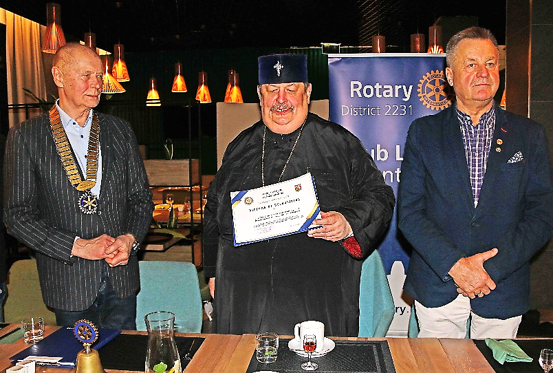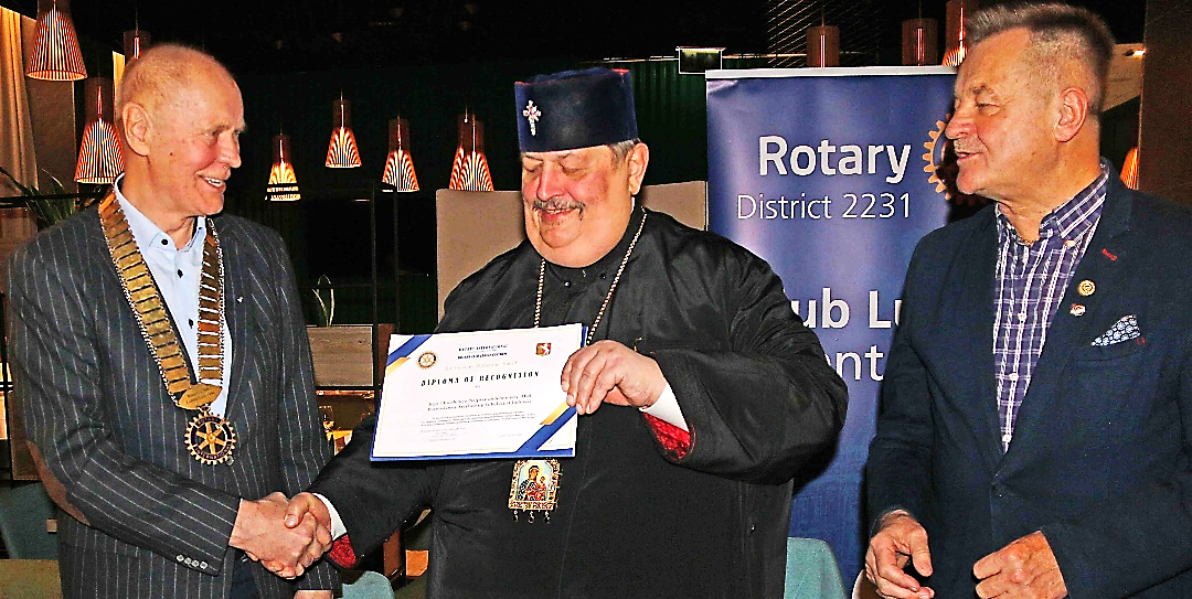Na zakończenie spotkania Jego Ekscelencja otrzymał nasze Klubowe uhonorowanie Diploma of Rcognition „za humanizm w myśleniu i działaniu w trudnych współczesnych czasach; za wybitną osobowość inspirującą do zgodnego współistnienia różnych wyznań i kultur, a co znajduje odzwierciedlenie w rotariańskim zawołaniu „Create hope in the world! „